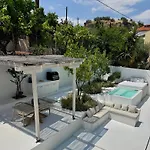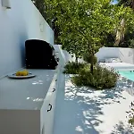 Vila Vila The Inora Marathos je umístěna 1 km od Paralia Agiou Georgiou, je 1-ložnicové ubytování s terasou. Vila Vila The Inora se nachází v 10 minutách chůze od centra města Marathos a nabízí soukromý plavecký bazén.